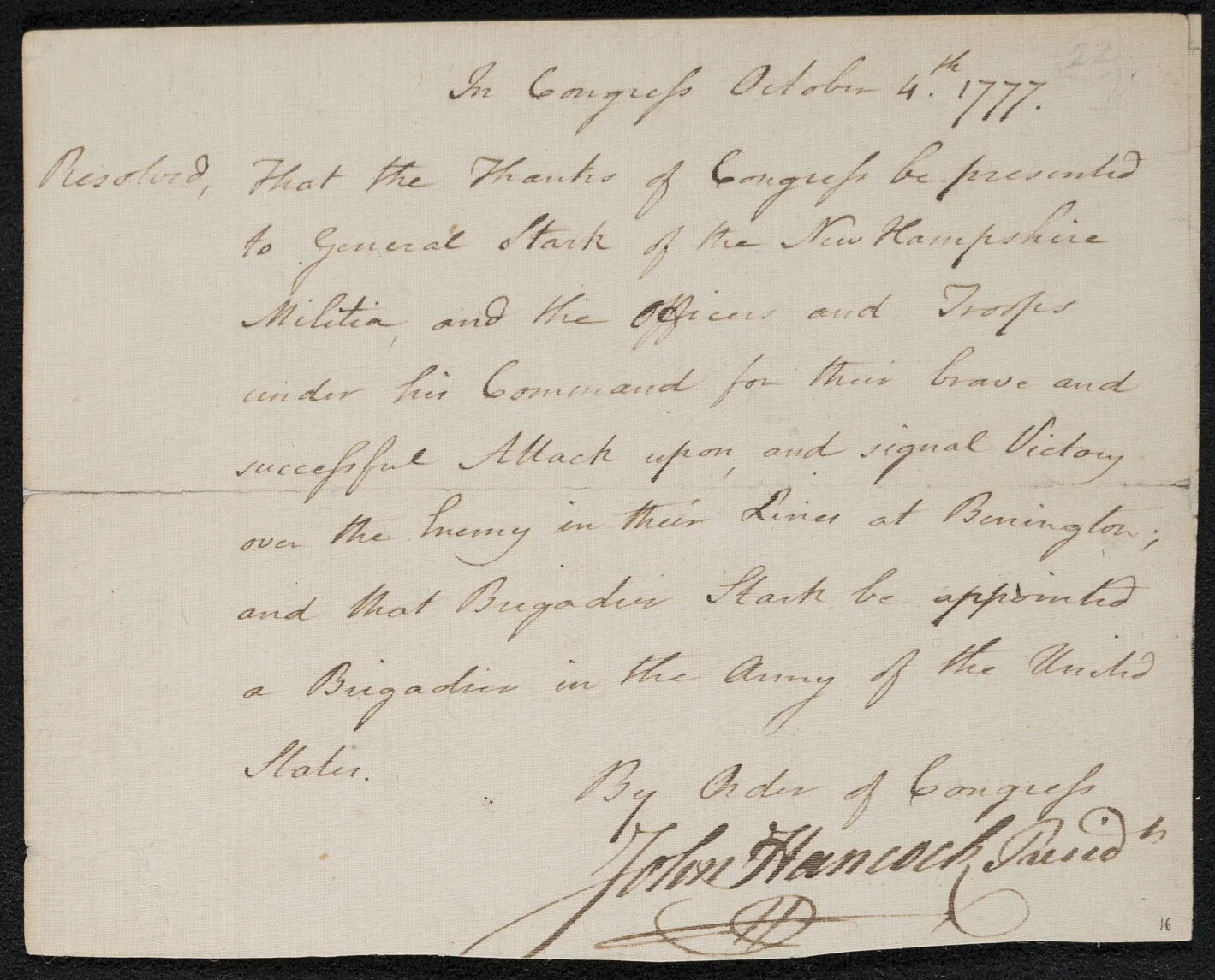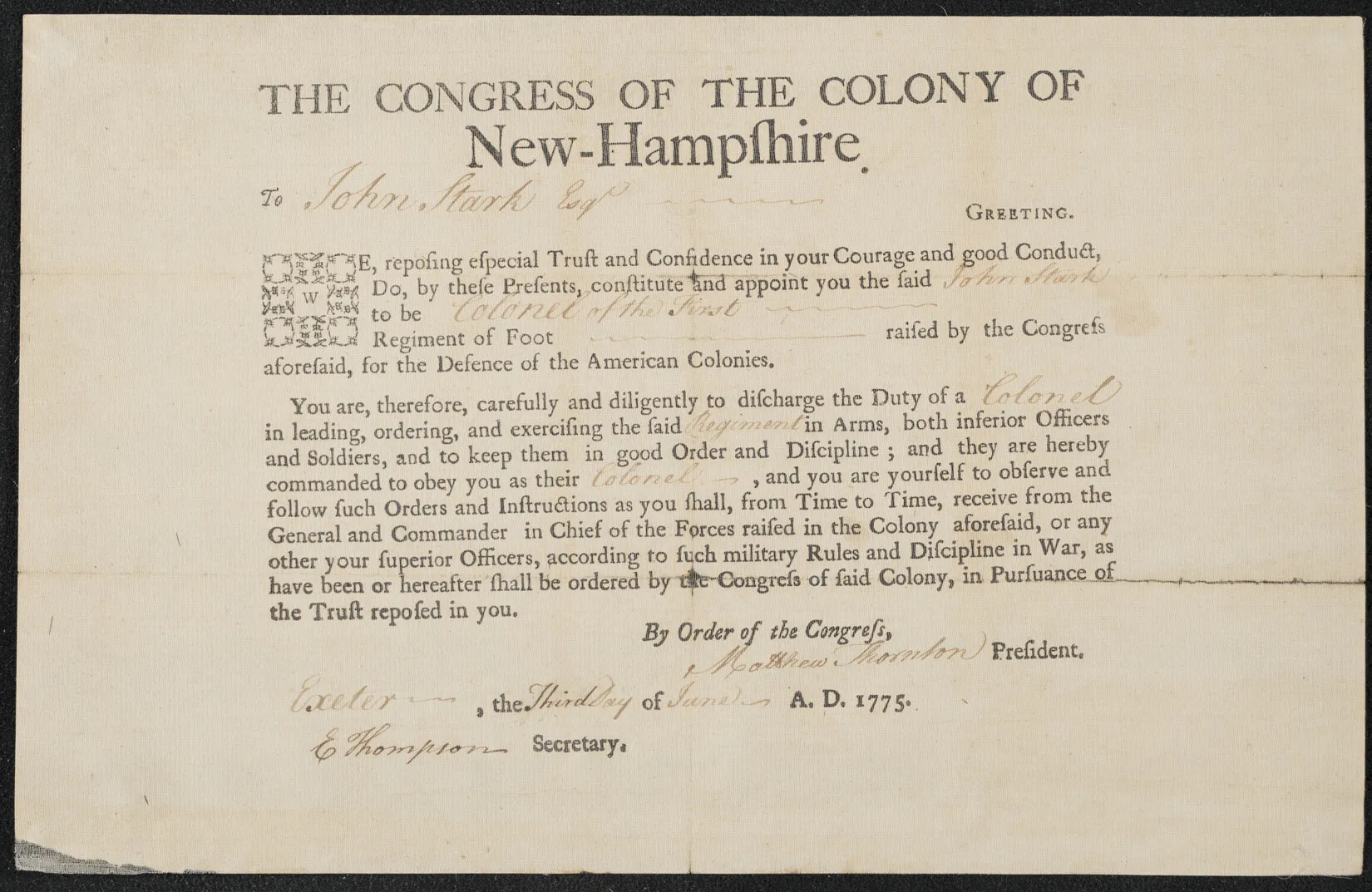 - John Stark Papers, New Hampshire Historical Society, Concord, NH.