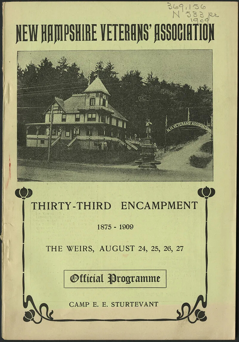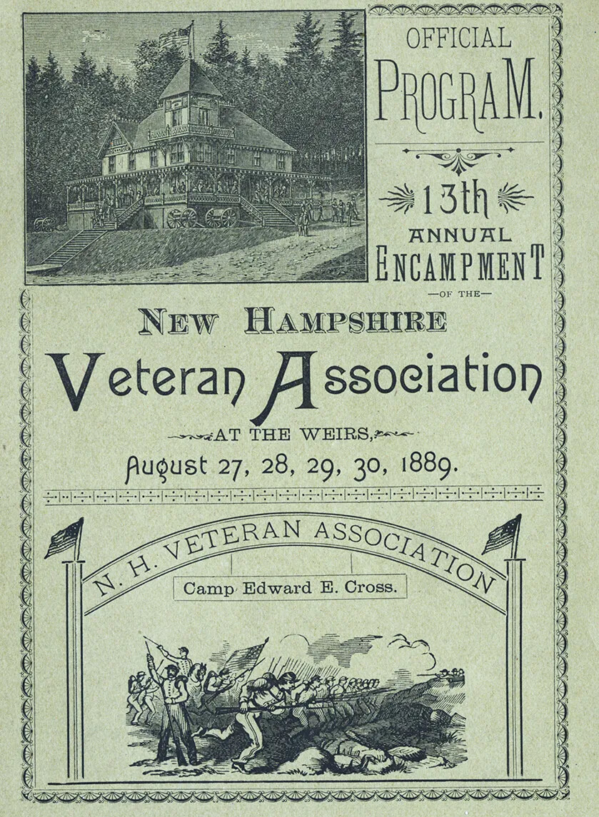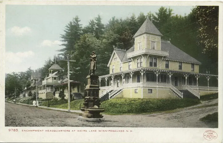 The Weirs Beach Veterans Campground in the Lakes Region of New Hampshire was the national headquarters of veterans reunions after the Civil War. Not only a site for statewide reunions, it also welcomed Union veterans and their families from across the North, as well as housing a pavilion for the national veterans organizations. No other states had such extensive or active veterans campgrounds.