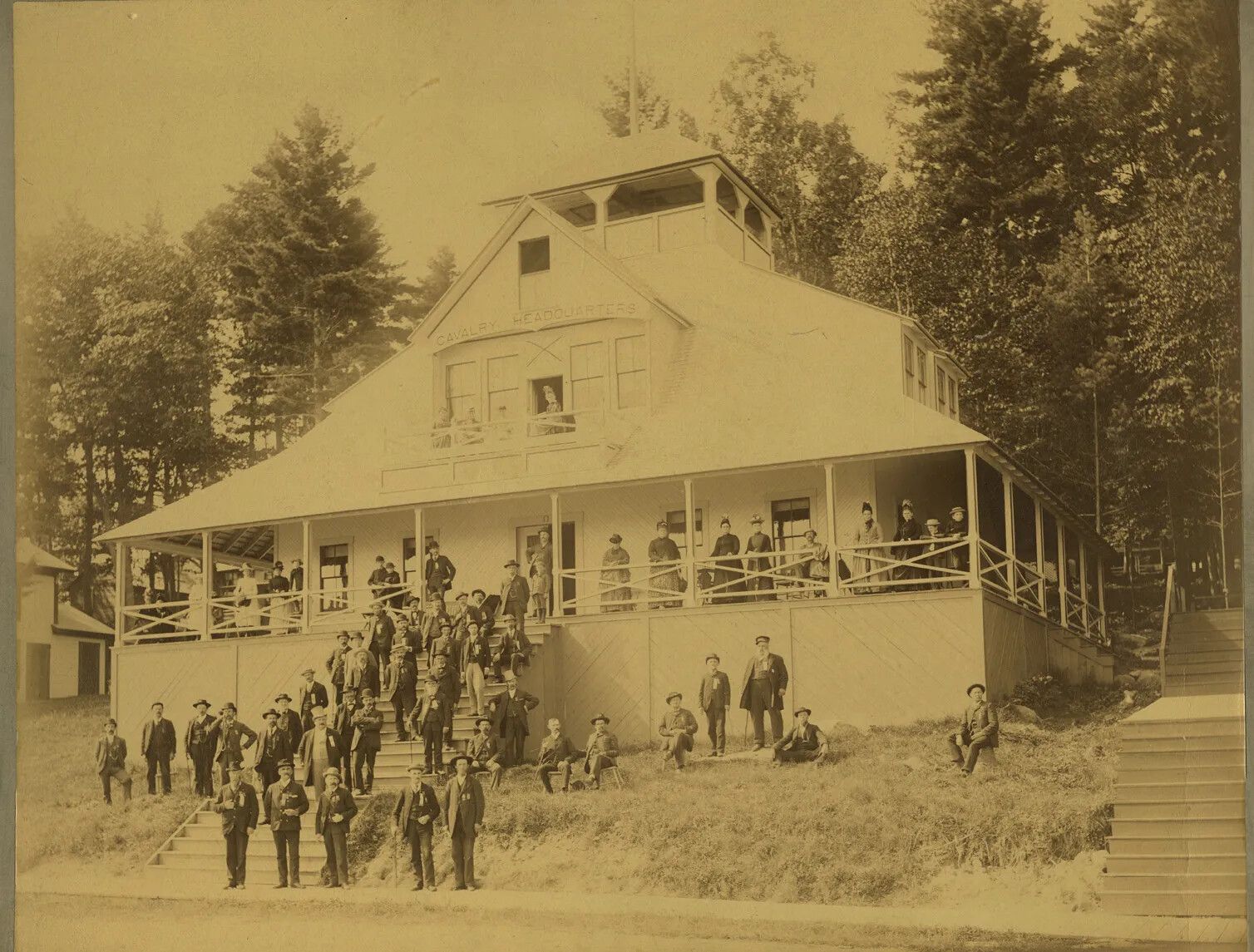 The summer retreats at Weirs Beach proved increasingly popular, and in the early 1880s, the Veterans’ Association started building permanent structures at the site, such as dining and dancing pavilions, a grandstand and amphitheater, and a speaker’s platform. The state government paid to construct barracks, and the various New Hampshire regiments built their own regimental houses. Unsurprisingly, the first of these regimental houses was organized by the Fifth New Hampshire, which had earned the reputation of being one of the toughest units in the Union Army. The regiment was often referred to as the “Fighting Fifth.”